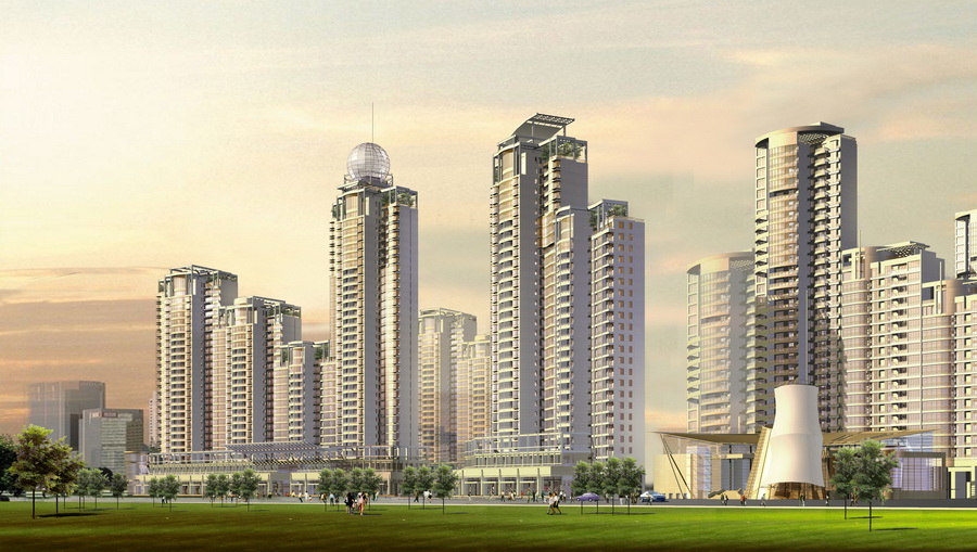 本地块由35幢板式高层组成,高度控制在100米以下。沿东新路设计成商业街,设置了中央会馆、商场、超市、餐饮等配套。南北各设一个健身中心,游泳池结合会馆布置。